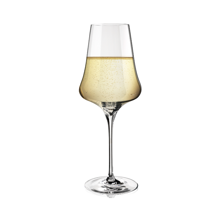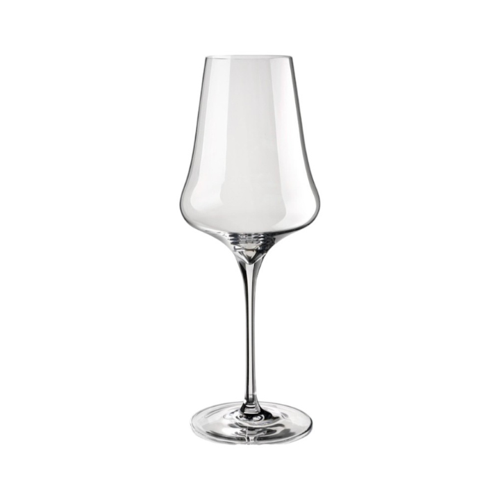 Kristallglas 47 cl för vita och eleganta röda viner. Maskintillverkat, blyfritt och ultralätt med kallskuren kant, perlagepunkt och sömlös övergång mellan kupa och fot (pulled stem). Ø93 mm, H246 mm.